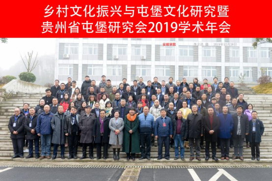 12月28日,“乡村文化振兴与屯堡研究”暨贵州省屯堡研究会2019学术年会在安顺学院召开。来自暨南大学、贵州民大、贵州师大、贵州师范学院等省内外高校专家学者,贵州省戏剧家协会地戏分会、安顺市屯堡文化学会、安顺市地戏文化协会、安顺市民间文艺家协会、《文化安顺》等安顺社科界代表,西秀区旧州中学代表,山东近知研学旅游服务有限公司、贵州大屯文化传媒有限公司、安顺洽闻研学教育咨询有限公司等企业代表,来自六盘水市、铜仁市、黔西南州的学者,安顺屯堡村寨代表,屯堡非物质文化遗产传承人,以及安顺学院的师生代表一百余人参加了年会。