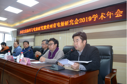 研究会秘书长、安顺学院屯堡文化研究中心主任吕燕平汇报了2019年主要工作:《屯堡百村调查》(二期)在暑期完成近三十村落的调查;《安顺学院学报》“屯堡学”全年六期组稿二十多篇;张定贵《屯堡仪式社会研究》、杜志明《明代地方武力与基层秩序研究》两项国家社科基金课题顺利结题,《屯堡仪式社会研究》获良好等次鉴定;第三次代表大会筹备情况。