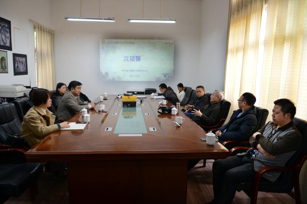 3月24日,沈福馨先生参观了安顺学院校园、屯研中心展厅和资料室,然后在屯研中心会议室进行讲座交流活动。