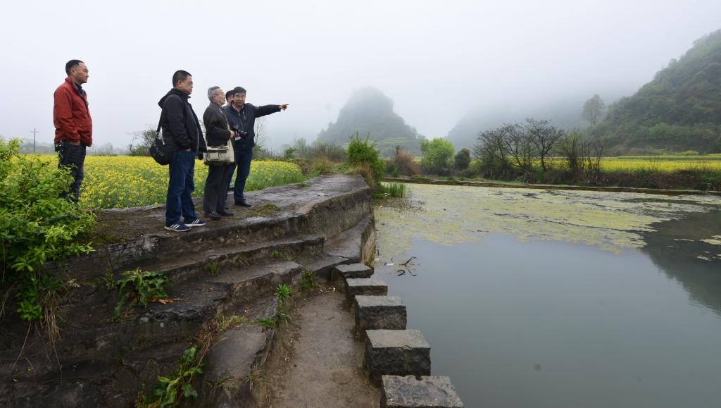 24日—25日,在安顺学院屯堡文化研究中心主任吕燕平等陪同下,沈福馨先生细致勃勃对屯堡石器馆、安顺老城区文物古迹、屯堡村落、田园景观进行考察。(图/文 李立洪)