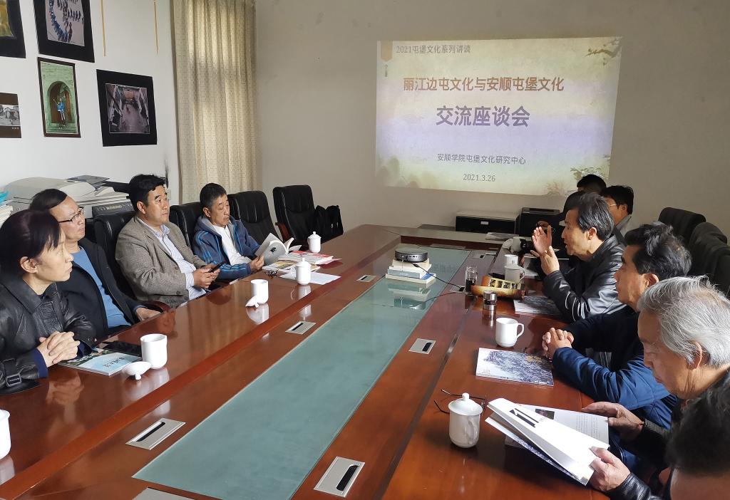 3月26日下午,丽江政协、丽江边屯文化研究会赴安调研组一行8人,由安顺市政协牵线,到贵州省屯堡研究会、安顺市屯堡文化学会驻地安顺学院屯堡文化研究中心,开展学术交流活动。