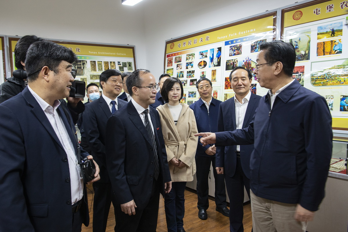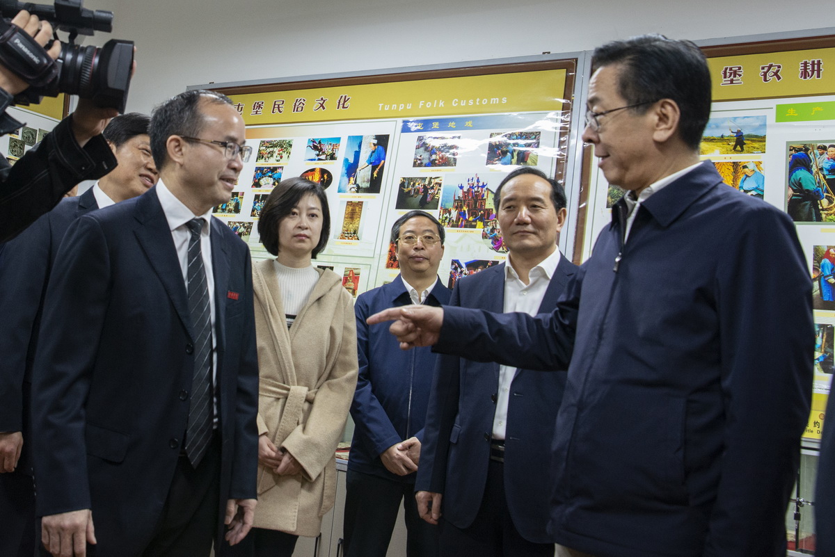 卢雍政参观屯研中心中指出,屯堡文化的研究应从“一个源头”到“花开两朵”进行深度研究。注重考古挖掘,追本溯源;注重相似性和差异性的比较研究。(图/文 李立洪)