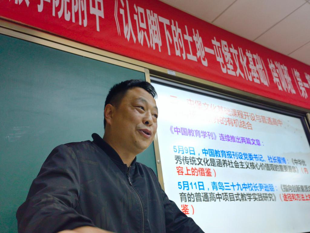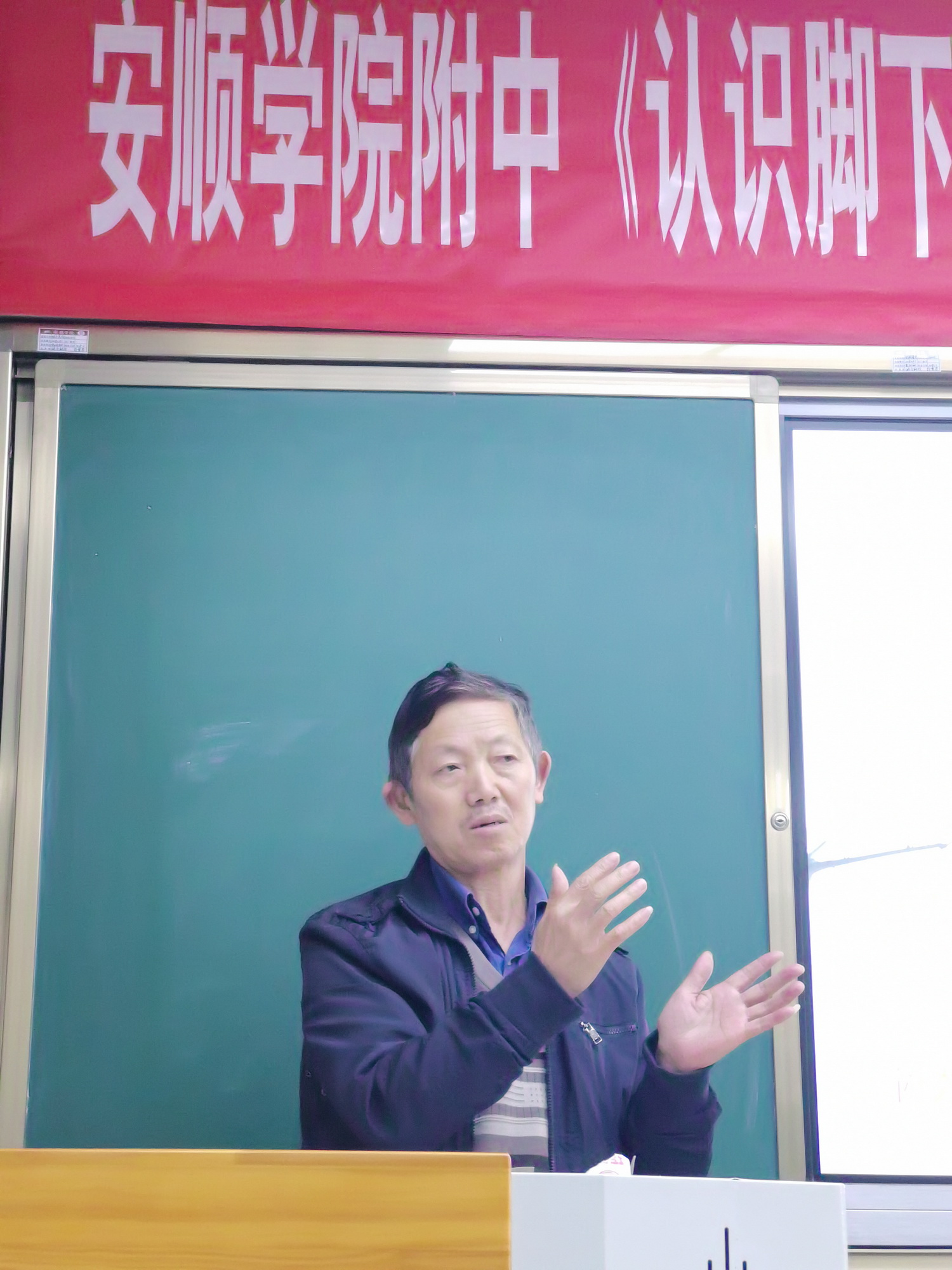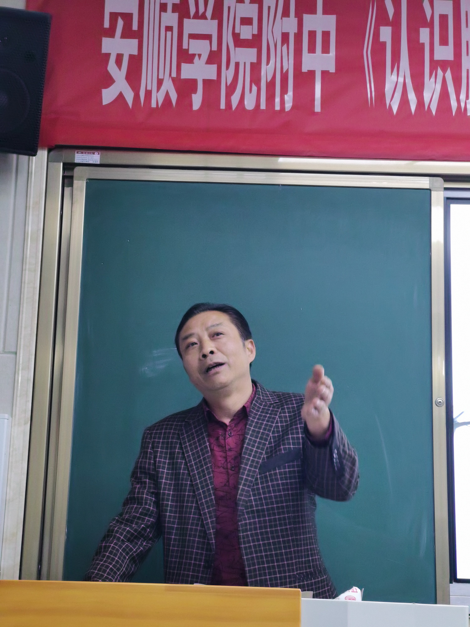 活动由贵州省屯堡研究会理事、安顺市屯堡学会、安顺市地戏文化协会副秘书长、安顺学院附中屯堡文化基础培训班主办教师曹仕勇主持。曹仕勇老师首先介绍了开办培训班的背景和目的,从党和国家对传统文化的高度重视、用中华优秀传统文化涵养社会主义核心价值观、把屯堡文化的优秀元素融入普通高中各学科核心素养的培育、通过“项目式”教学培养学生创新意识、提升文化自信等几个方面对培训班的开设架构和思路进行全面的介绍。接着,安顺学院附中党委书记罗瑜代表学校党政发言,对培训班的开设表示充分的肯定和支持。各位参会嘉宾分别进行了交流发言。