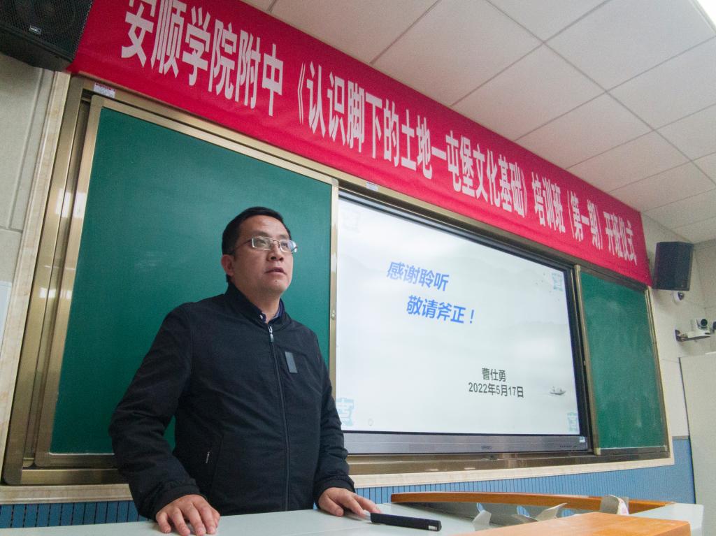 2022年5月17日,为牢树学生家国情怀,落实“立德树人”的教育根本任务,提升文化自信,彰显办学特色,促进学生全面发展,安顺学院附中举办《认识脚下的土地--屯堡文化基础》培训班(第一期)开班仪式。