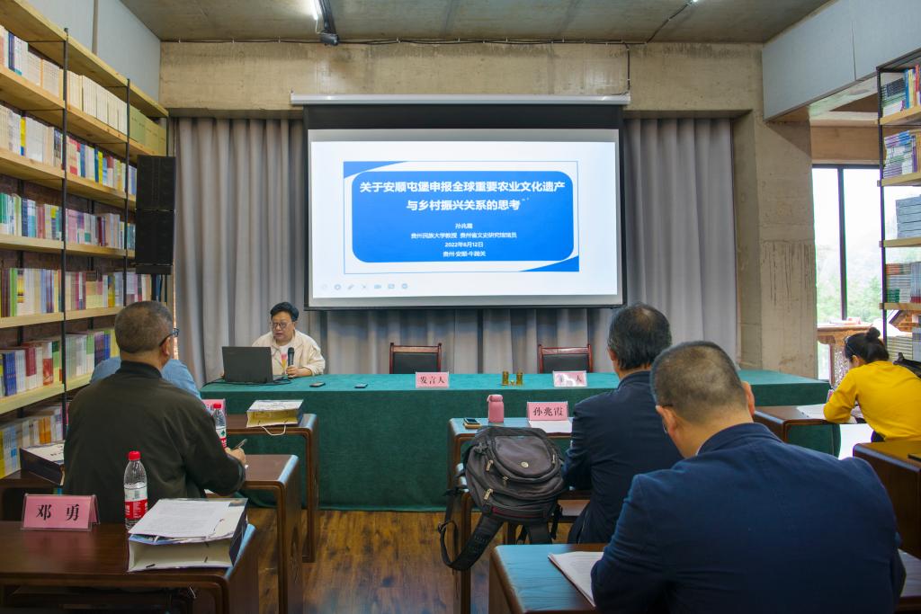 2022年6月12日,安顺市屯堡文化保护利用研讨会在安顺市经开区幺铺镇牛蹄关“山骨博物馆”会议室召开,副市长汪文学出席会议,市文联、市文体广电旅游局、市屯堡管理处主要领导,贵州大学、贵州民大、贵州人民出版社、安顺学院以及安顺本地专家学者三十余人参加会议。市文物局局长石庆利主持会议。
