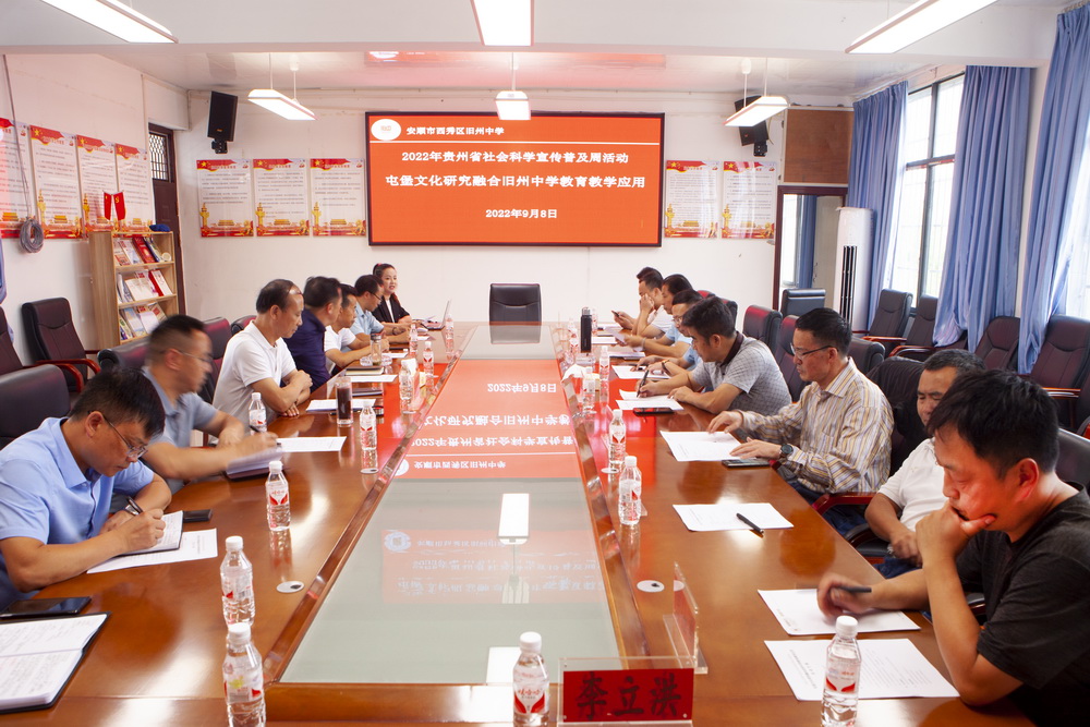 9月8日下午,由贵州省屯堡研究会主办、安顺学院贵州省屯堡文化研究中心、安顺市屯堡文化学会、旧州中学等单位承办的2022贵州省社会科学宣传普及活动——屯堡文化研究融合旧州中学教育教学应用在旧州中学举行。