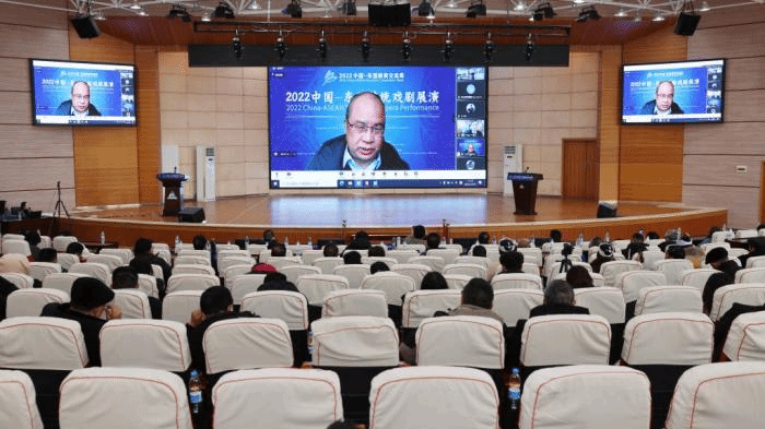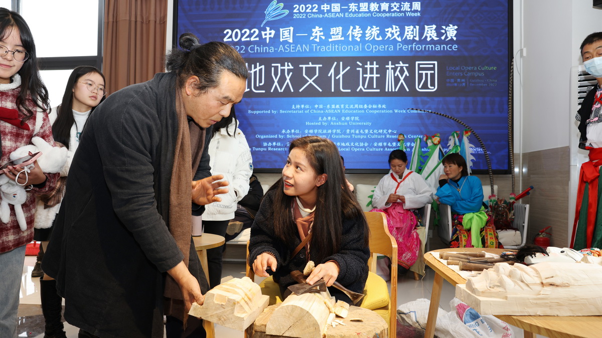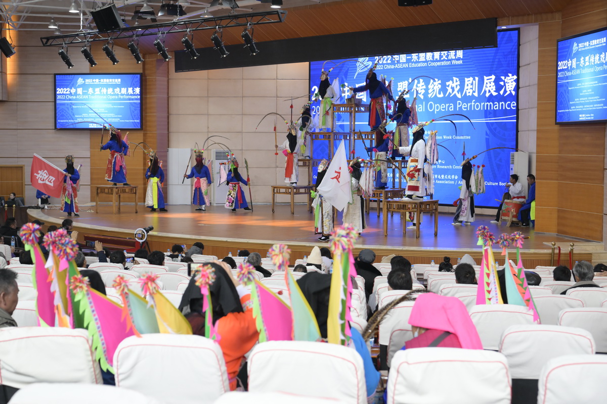 9:00,2022中国-东盟教育交流周传统戏剧展演在安顺学院学术报告厅开幕。安顺市人民政府副市长汪文学,中国—东盟教育交流周组委会秘书处办公室主任陈文益,安顺学院党委书记罗荣彬,安顺学院党委副书记、校长陈云坤,安顺学院党委委员、副校长殷红敏,贵州省文联副主席、安顺市文联主席姚晓英,安顺市民宗委党组成员、副主任杜铁出席开幕式。新加坡、越南、马来西亚等东盟国家相关学者通过线上方式出席开幕式。