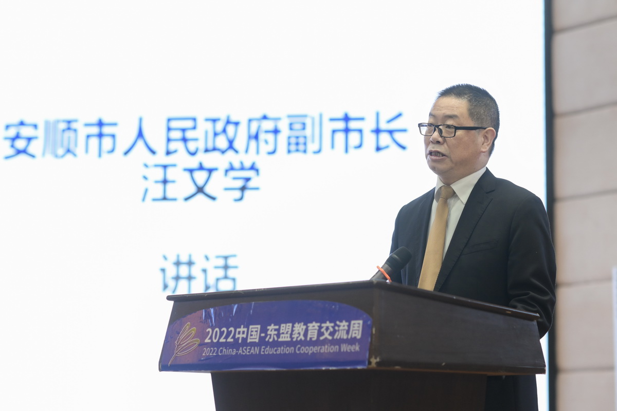 安顺市人民政府副市长汪文学在讲话中表示,中国与东盟地理相邻,文化相通,血脉相亲,利益相融。自2008年首届中国-东盟教育交流周落户贵州,十五年来,交流周秉持“平等互信、开放创新、互学互鉴、合作共赢”的精神发展并形成了一系列影响广泛的合作项目和活动,成为中国东盟最具代表性的政府间教育合作平台,为推动中国东盟教育合作、促进民间友好、夯实人文交流支柱发挥了积极作用,为服务贵州全方位对外开放、赋能特色教育强省建设、助力贵州高质量发展提供了有力支撑。