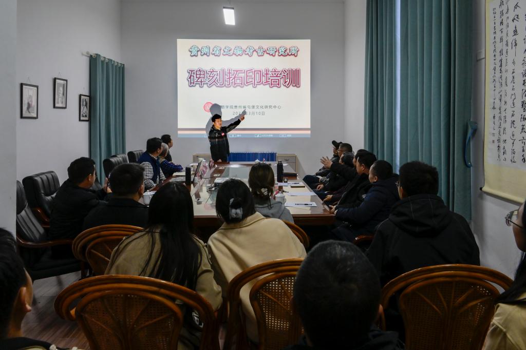 为更好开展安顺屯堡碑刻收集整理工作,抢救发掘屯堡乡土文献,2023年3月10日,贵州省古堡文化研究中心特邀请贵州省文物考古研究所专家举办碑刻拓印专题培训。