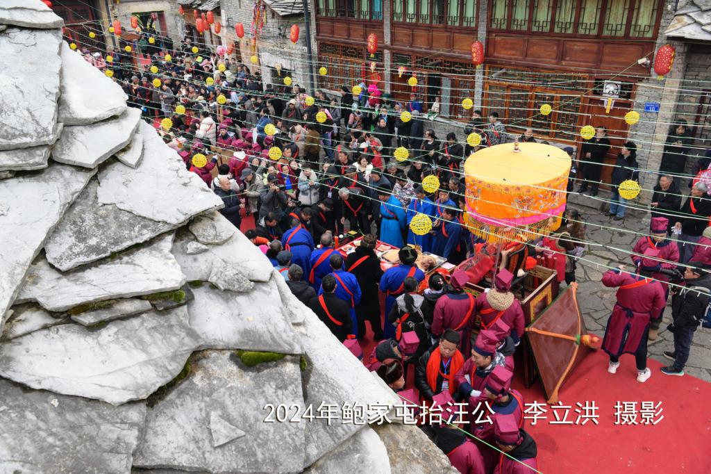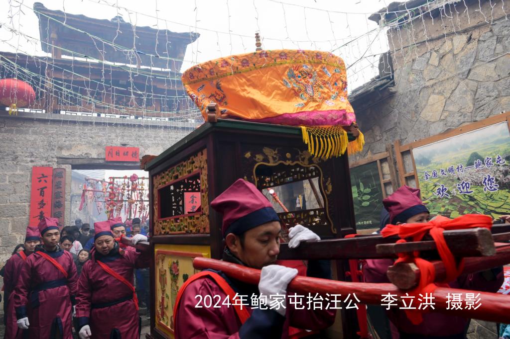 2024年2月26日甲辰龙年大年十七,西秀区大西桥镇鲍家屯村举行了一年一度的民俗活动——“抬汪公”仪式。“抬汪公”也叫“抬亭子”,沿袭了六百多年,活动的意义主要是祈祷国泰民安、风调雨顺、五谷丰登、村寨平安、家庭和谐。