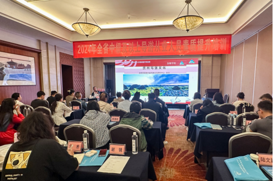 5月28日,由中共贵州省委宣传部、中共贵州省委党史研究室、贵州省文化和旅游厅、贵州省人力资源和社会保障厅主办,贵州省旅游人才发展促进会承办的2024年全省中级及以上导游从业人员素质提升培训班在贵阳开班。本次培训旨在贯彻落实《省人民政府关于推动职业技能培训高质量发展的意见》精神,加快推进导游人才队伍建设,有力发挥全省导游从业人员对行业、社会示范引领作用,不断提升全省导游从业人员服务能力水平,助推我省旅游业高质量发展。