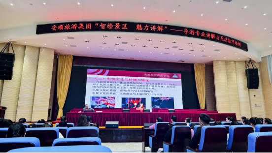 10月23日,安顺旅游集团(简称“安旅集团”)主办的“智绘景区 魅力讲解”讲座在黄果树成功举行。此次讲座由安顺学院贵州省屯堡文化研究中心主任、贵州省屯堡研究会会长吴羽教授主讲,安旅集团近百名导游及工作人员聆听了讲座。