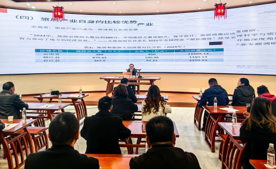 陈斌以《“+屯堡”赋能避暑旅居小镇小寨建设》为主题,基于安顺屯堡旅游发展的现实,在农文旅融合发展和世界级旅游目的地建设的宏观背景下,着力做好气候景观、地貌景观和“他者”经验 “+屯堡”,赋能安顺屯堡避暑旅居小镇小寨建设,助推安顺旅居产业发展。50余名人员聆听了讲座,与陈斌积极互动,反响良好。讲座结束后,贵州省屯堡研究会副会长兼秘书长、安顺学院屯堡文化传播转化研究省创新团队带头人张定贵教授做了精彩点评。(文/李立洪 图/秘书处)