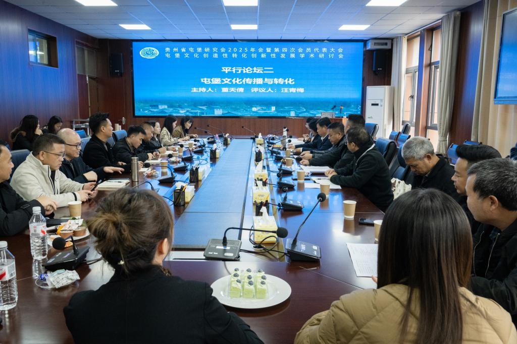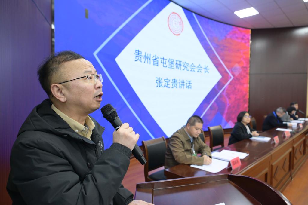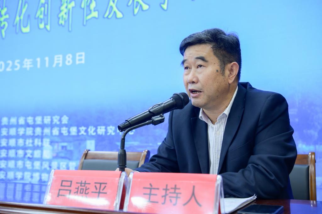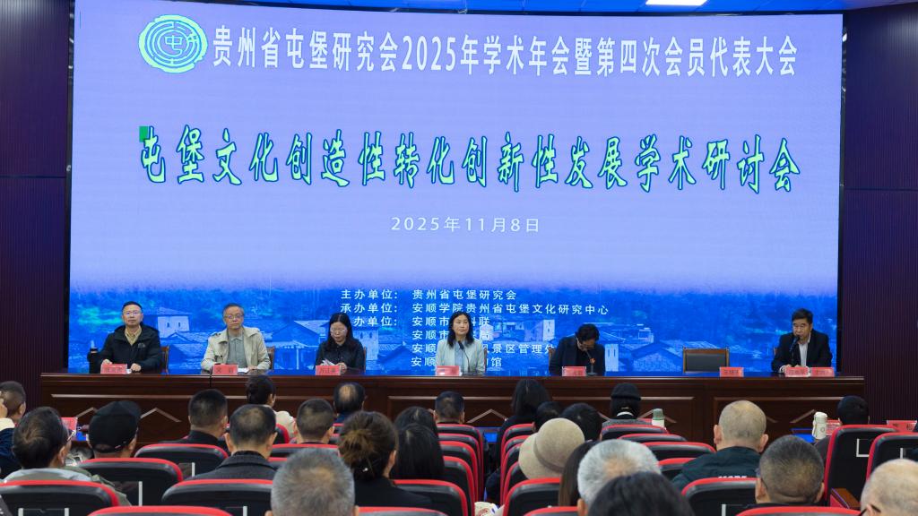 2025年11月8日,贵州省屯堡研究会2025年学术年会暨第四次会员代表大会在安顺学院隆重举行。本次会议由贵州省屯堡研究会主办,安顺学院贵州省屯堡文化研究中心承办,安顺市社会科学界联合会、安顺市文化广电旅游局、安顺市屯堡风景区管理处、安顺学院博物馆共同协办。会议以“屯堡文化创造性转化创新性发展”为主题,旨在凝聚学界与社会力量,深化屯堡文化研究。来自省内外高校、科研机构、文化单位的专家学者及研究会会员代表齐聚一堂,共襄盛举。安顺市社科联副主席万江英、安顺市文体广电旅游局党组成员、市文物事业发展中心主任王继平等出席会议。