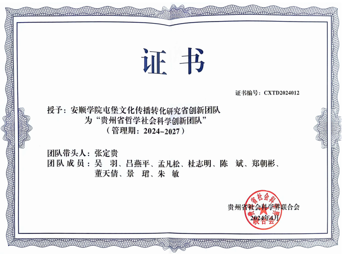 近期,贵州省屯堡文化研究中心(简称屯研中心)荣获“贵州省哲学社会科学创新团队”的荣誉称号。以表彰屯研中心十多年来在屯堡文化研究中所作出的突出贡献。据悉,此次评选活动有一百五十多家机构申报,最终评选出12家获此殊荣。