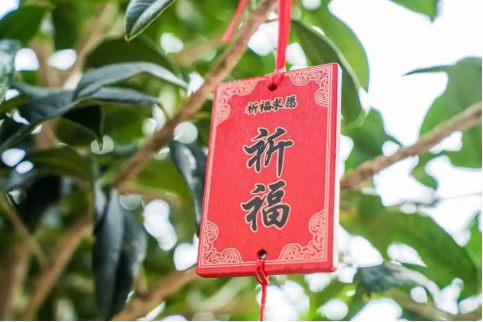 游客步入云峰景区,即可获赠祈福牌一枚。于其上写下心愿,再将其轻系于云山屯口明屯桂花树的枝桠间,让心愿在这诗意之地静候新岁的佳音。