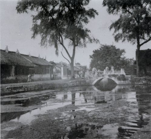 双桥(又名二桥),位居城西水关普济桥、奋武桥之间。桥为单拱,孔径较小,桥面近水,雕栏低矮,游人可倚可坐。桥下浮萍逐波,水草摇曳,鱼游石隙,虾戏浅水;桥头两株老槐,遮阴蔽日,鸣蝉声声。津津闲人坐等夜来,一桥而渡炎凉,天人合一,闲适散淡的小城浮生日常,浓缩成一幅双桥风月图。
