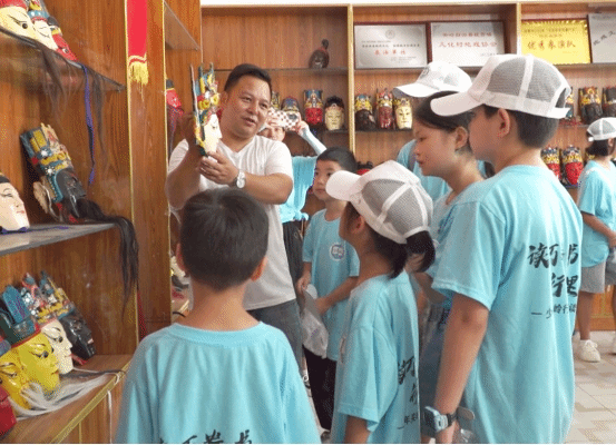 王秀双为到村开展研学活动的学生讲解凡化地戏的历史