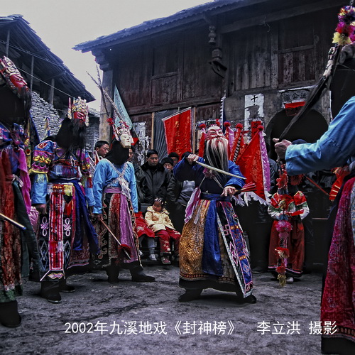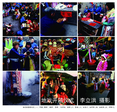 地戏队应约到外村演出之前,还有一些参拜仪式,即由顶戴元帅的演员带领大家在村落