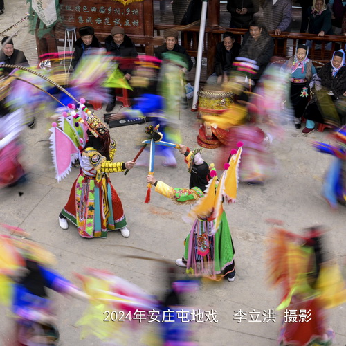 安顺作为屯堡区,演艺活动中最具特色的首推地戏。地戏俗称“跳神”,是屯堡人独有的一种民间戏剧活动,演员面罩青纱头顶面具,背插战旗手持刀戟,在锣鼓伴奏中演唱和舞打。剧目多为英雄征战故事,体现崇武尚勇、追忆祖先的精神情怀,具有娱神娱人、祈福消灾、道德教化和交际娱乐功能,盛行于安顺以及周边平坝、普定、镇宁、关岭、紫云、清镇、花溪、长顺等屯堡人聚居之地,因其独特性和唯一性而广受关注。地戏的起源,一般认为源于明代的军傩,大约在明初就随征南大军传入黔地。近年研究认为,地戏是由明朝初年驻屯黔中的将士和江南等地移民及其后裔在祭祀、娱乐习俗的基础上,将傩仪、武打、面具与说唱文学等“形式碎片”嫁接组合而成,成型时间约为清朝前期,是继发性仪式剧。