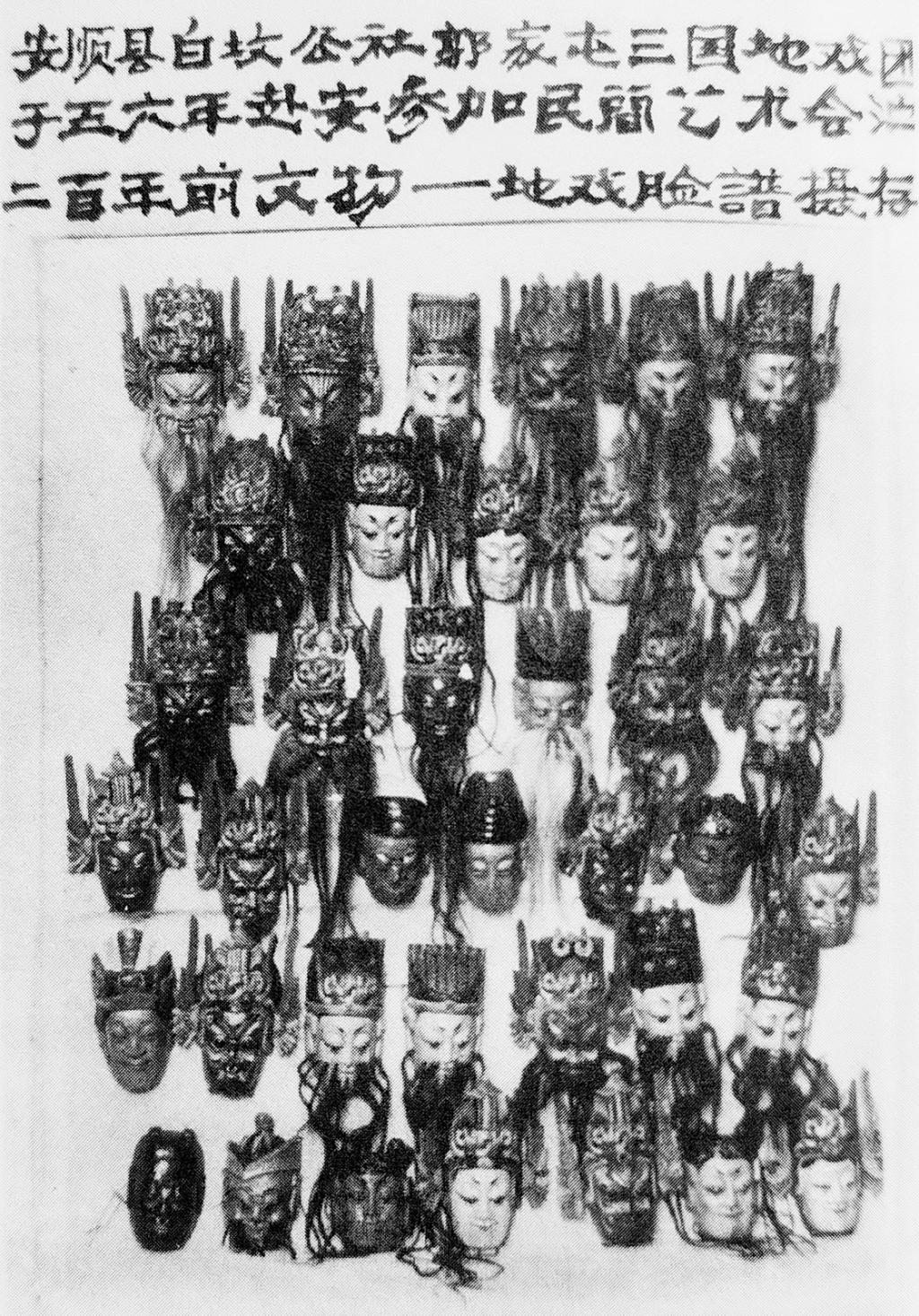 1956年参加安顺民间艺术汇演的郭家屯地戏队保存的二百年前的老面具(杜应国提供)